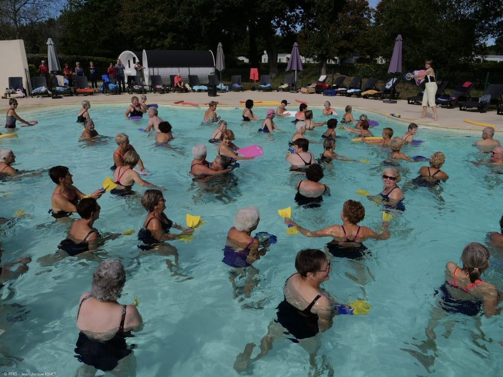 L’aquagym est une activité sportive conseillée à tous et principalement aux seniors parce qu’un corps immergé ne pèse plus que le tiers de son poids terrestre. C’est un sport complet qui fait travailler tous les muscles (abdominaux, fessiers, cuisses, épaules, bras…) sans risque de blessure et sans courbature douloureuse. La pression de l’eau évite les chocs, augmente le tonus musculaire, respiratoire, améliore la circulation sanguine et tonifie le rythme cardio-vasculaire. Trente minutes d’aquagym sont équivalentes à 1 h 30 de gymnastique terrestre soit 600 calories dépensées !