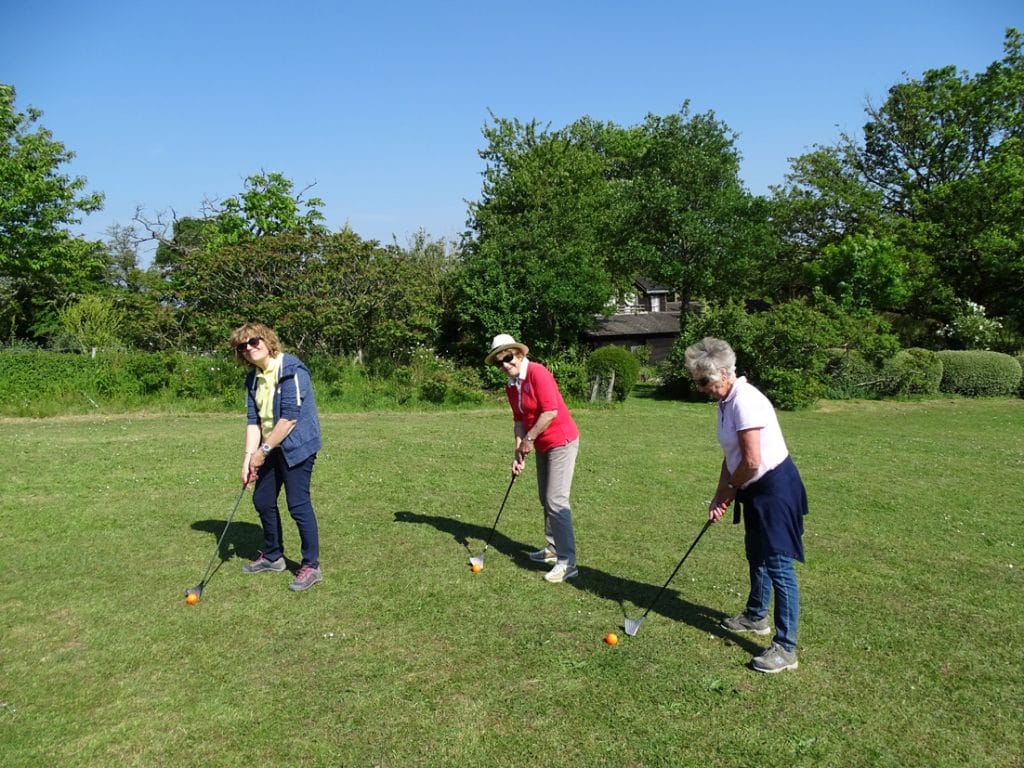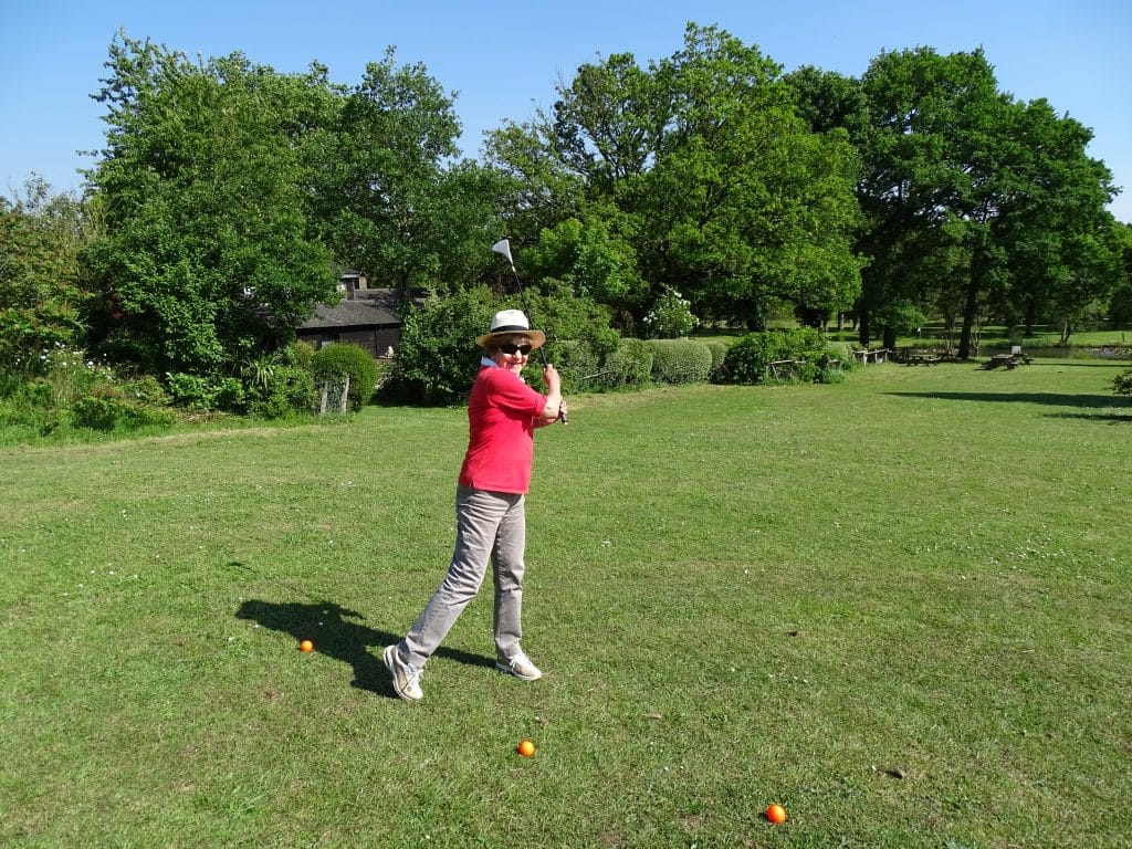 Le swin-golf est une forme populaire du golf. Les gestes sont quasiment identiques. À la différence du golf, le « swin-golfeur » ne dispose que d’une seule canne à trois faces qui lui permet de jouer à la fois loin du trou, à l’approche du trou et de finir le trou. La balle (en caoutchouc), plus grosse qu’une balle de golf, pèse le même poids. Ce sport à part entière est accessible à toutes et à tous.