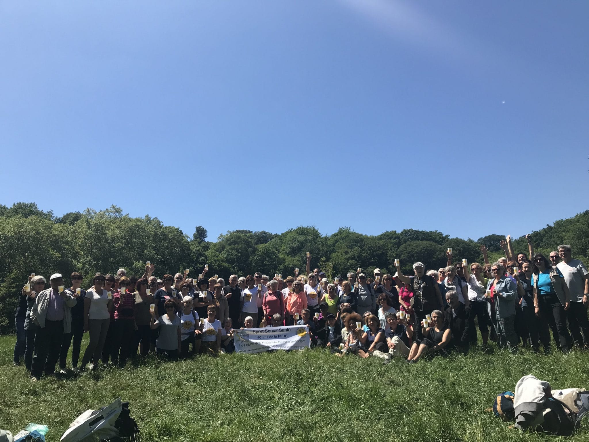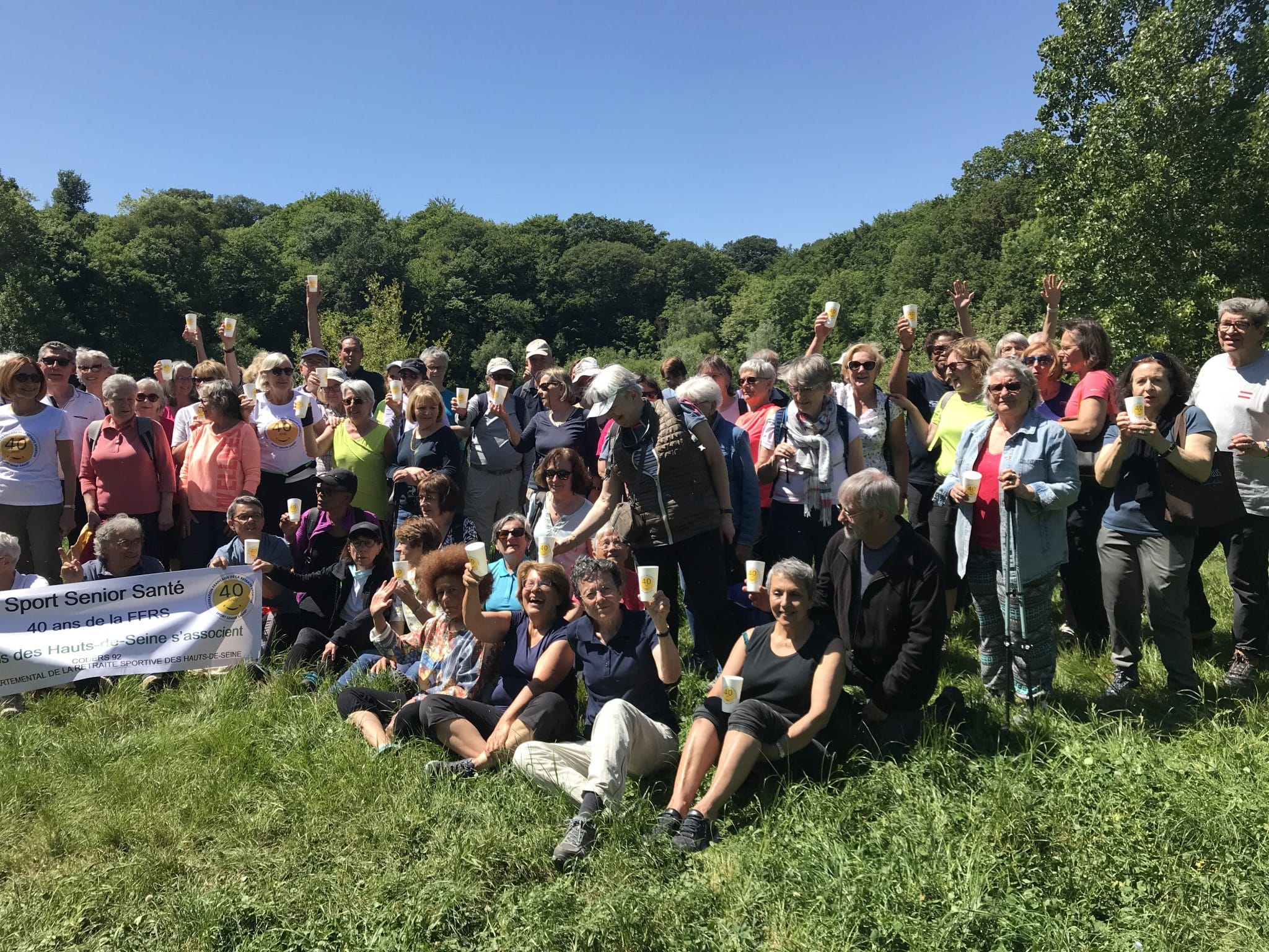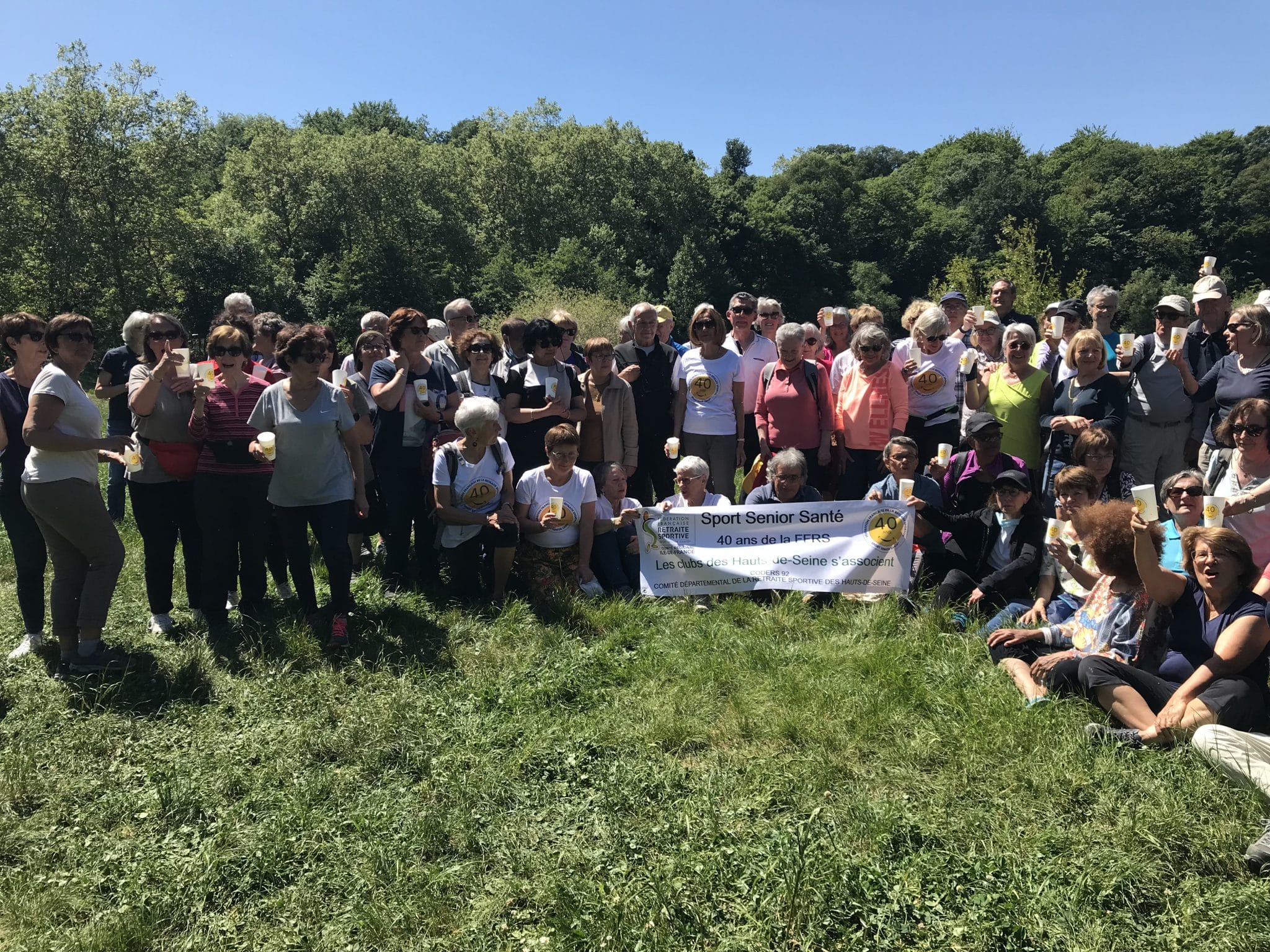 Le CODERS 92 et une centaine de ses licenciés issus des clubs d’Asnières-sur-Seine, Bagneux, Courbevoie, Châtenay-Malabry et Le Plessis-Robinson étaient à la fête le 13 mai. Rendez-vous était pris en Forêt de Meudon pour le traditionnel rassemblement annuel interclubs à l’initiative du Comité Départemental. Balades douces, grande randonnée, marches nordiques modérée, tonique, endurante … chacun était invité à marcher à son rythme parmi six options proposées. Un grand moment de partage suivit auquel s’étaient invités « tout smile dehors », les 40 ans de la FFRS ! Car il s’agissait aussi de cela : nous associer à l’anniversaire de notre fédération et donner à notre événement une résonance toute particulière. Ainsi tee shirts, gobelets, gâteau d’anniversaire et autres goodies n’ont pas hésité à s’approprier et « hisser » le logo dédié… Du sport aux festivités, une journée en tous points très réussie à laquelle nous a fait le plaisir de prendre part la présidente de notre Corers IDF, Patricia Evrard.